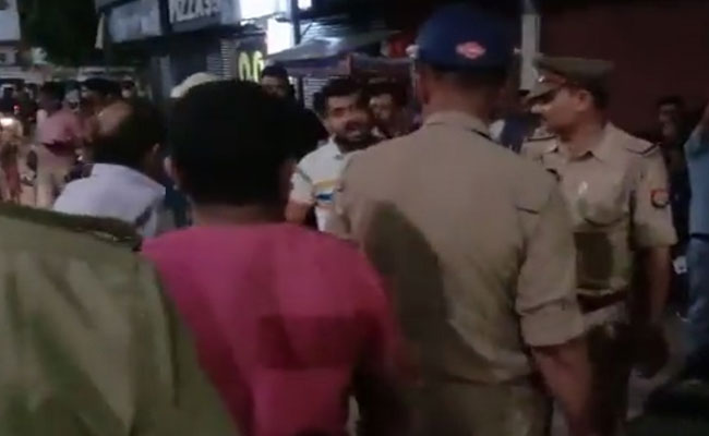 A ruckus erupted at the local office of the Rashtriya Swayamsevak Sangh here with a group of people hurling brickbats and opening fire after the outfit workers objected to a man urinating at their office gate, police said.