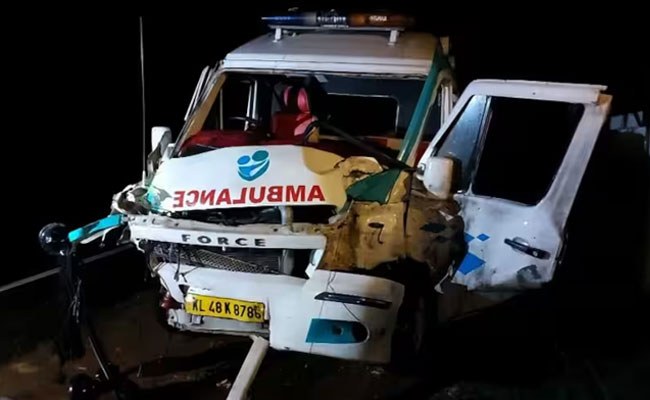 Three persons, including a young patient, met with a tragic end as an ambulance overturned after hitting a tree at Panthalur in Thrissure district of Kerala in the early hours of Wednesday, police said.