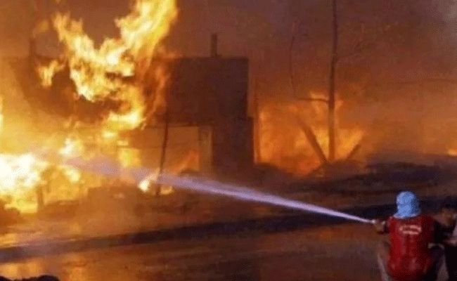 A fire destroyed a makeshift godown that stored plastic and materials for hoardings in Maharashtra's Thane district in the early hours of Wednesday, an official said.