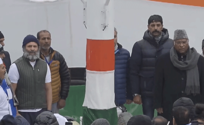 Congress leader Rahul Gandhi on Monday hoisted the national flag at the 'Bharat Jodo Yatra' camp site here and followed it with a fun snowball fight with his sister Priyanka Gandhi Vadra.