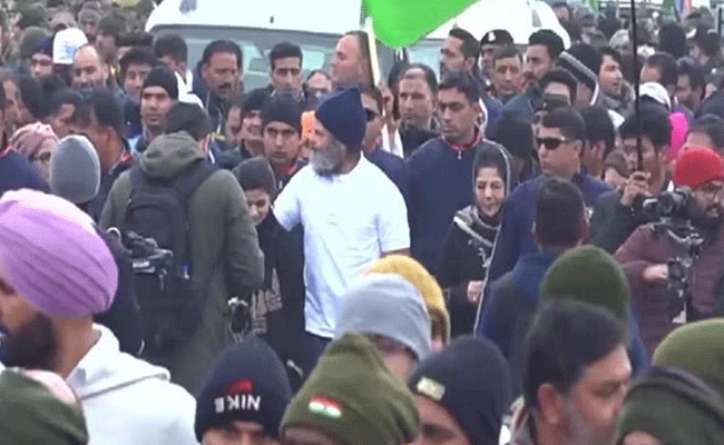 Mehbooba Mufti, head of the People’s Democratic Party (PDP), joined the Bharat Jodo Yatra of the Congress in Awantipora, Jammu and Kashmir, on Saturday.