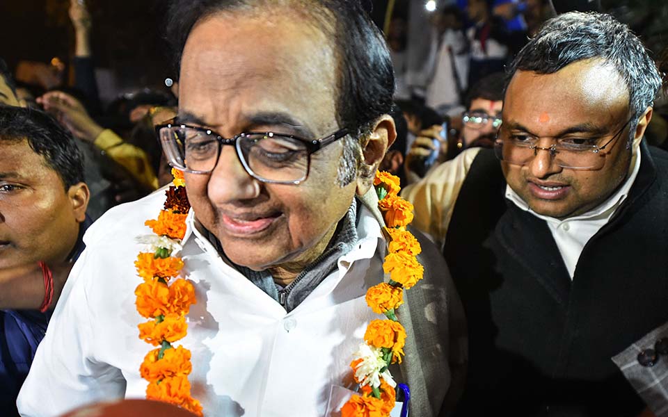 New Delhi: After 106 days in custody, former Union finance minister P Chidambaram on Wednesday night walked out of Tihar jail hours after the Supreme Court granted him bail in a money laundering case linked to the INX Media with some conditions like restraining the senior Congress leader from talking to the media about the case.
