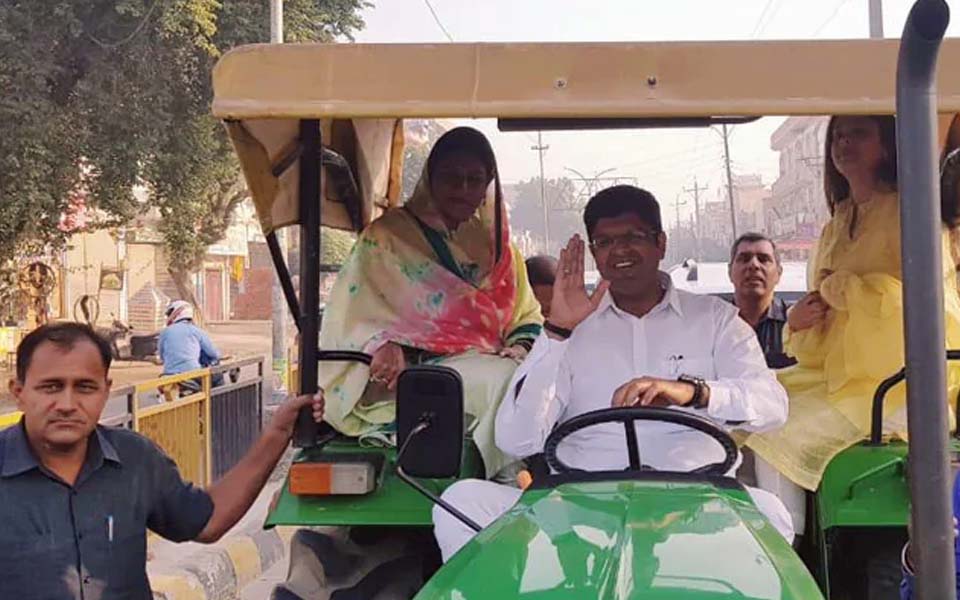 Chandigarh: At a Jat-dominated seat in Haryana, Dushyant Chautala, 31, who is leading young outfit Jannayak Janata Party (JJP), a breakaway faction of the once prominent Indian National Lok Dal (INLD), reached a polling booth in Sirsa by riding on a tractor.