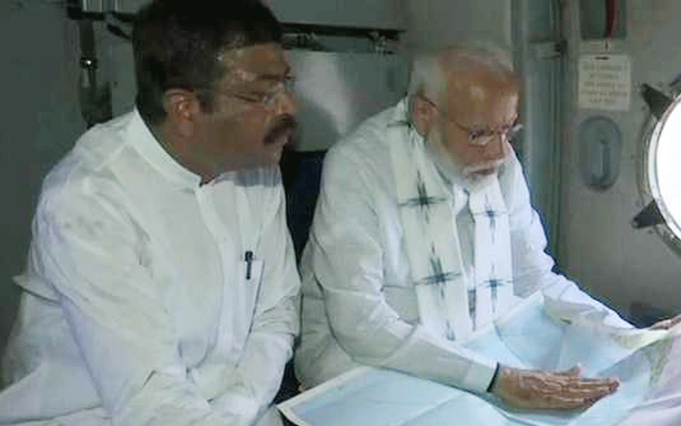 Prime Minister Narendra Modi on Monday conducted an aerial survey to assess the loss and destruction caused by Cyclone Fani in Odisha.