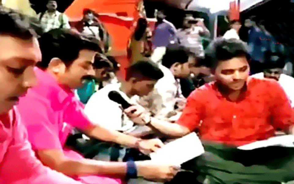 Hathras (Uttar Pradesh): Activists of religious group Hindu Yuva Vahini (HYV) have registered their opposition to offering 'namaaz' on the streets by reciting Hanuman Chalisa on the road in Uttar Pradesh's Hathras.