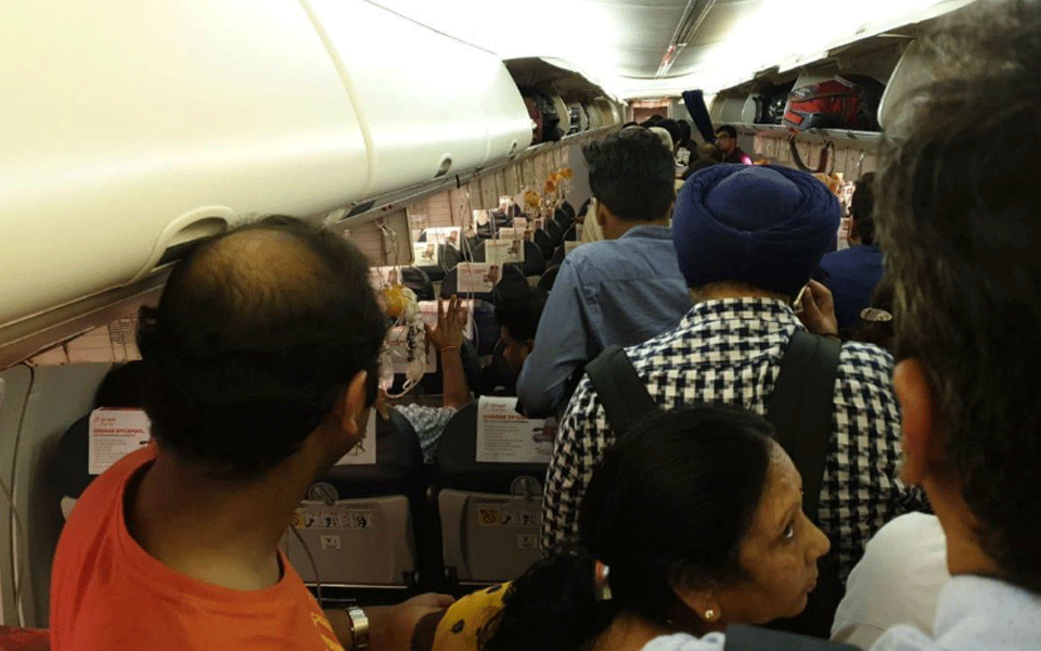 A SpiceJet flight from Jaipur skid and overshot the main runway while landing at the Mumbai airport amid heavy rains on Monday, although none of the passengers were hurt in the incident, an airline spokesperson said.