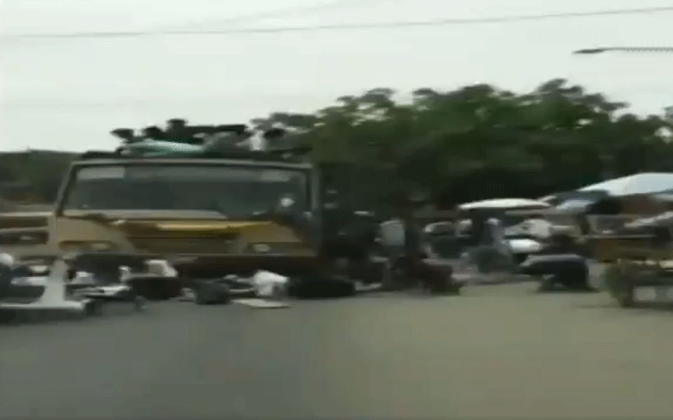 Chennai: A group of college students sitting on the roof of a city bus here in Tamil Nadu fell on to the road when the driver applied the brakes suddenly to avoid hitting a two-wheeler.