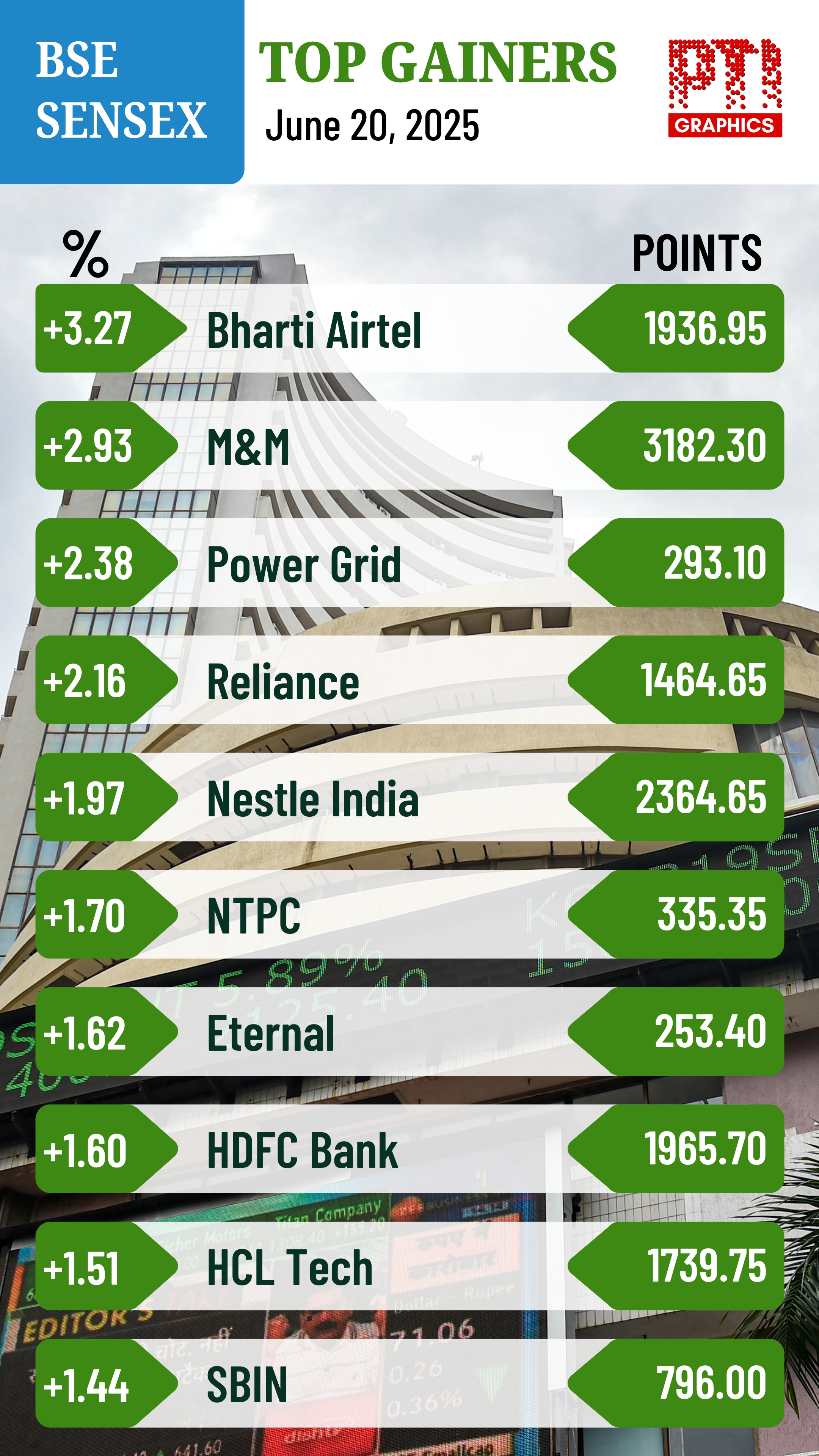 From the Sensex firms, Bharti Airtel, Nestle, Mahindra & Mahindra, Power Grid, Reliance Industries, NTPC, Eternal and HDFC Bank were among the biggest gainers.