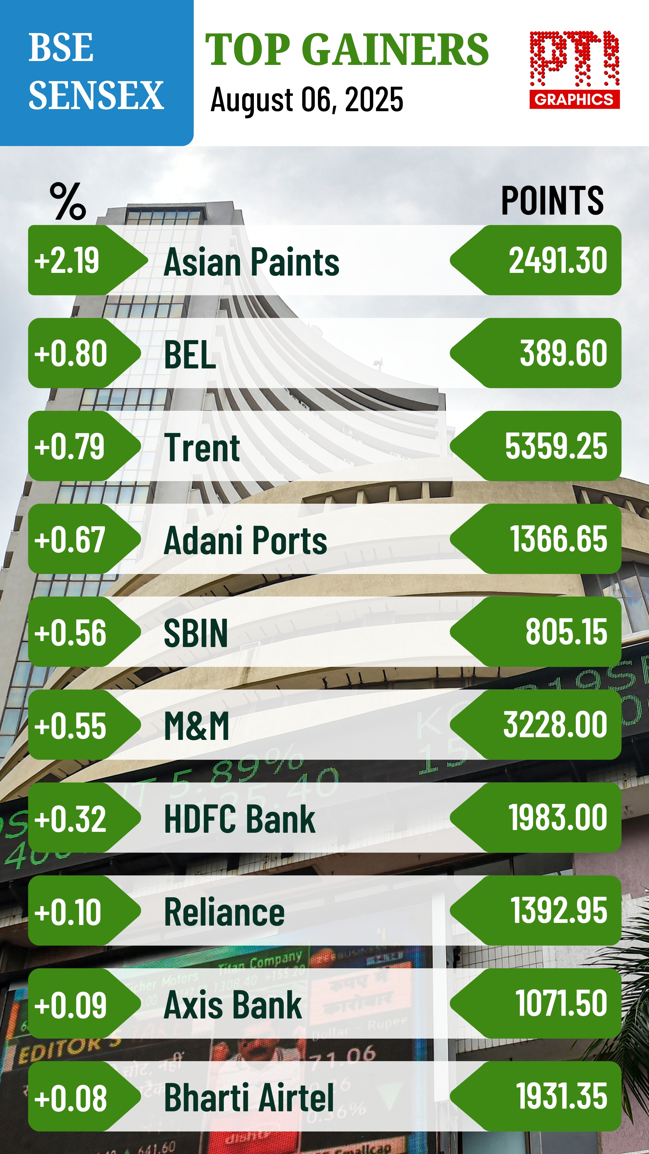 Asian Paints, Mahindra & Mahindra, BEL, Adani Ports, State Bank of India, Trent, HDFC Bank were among the gainers.