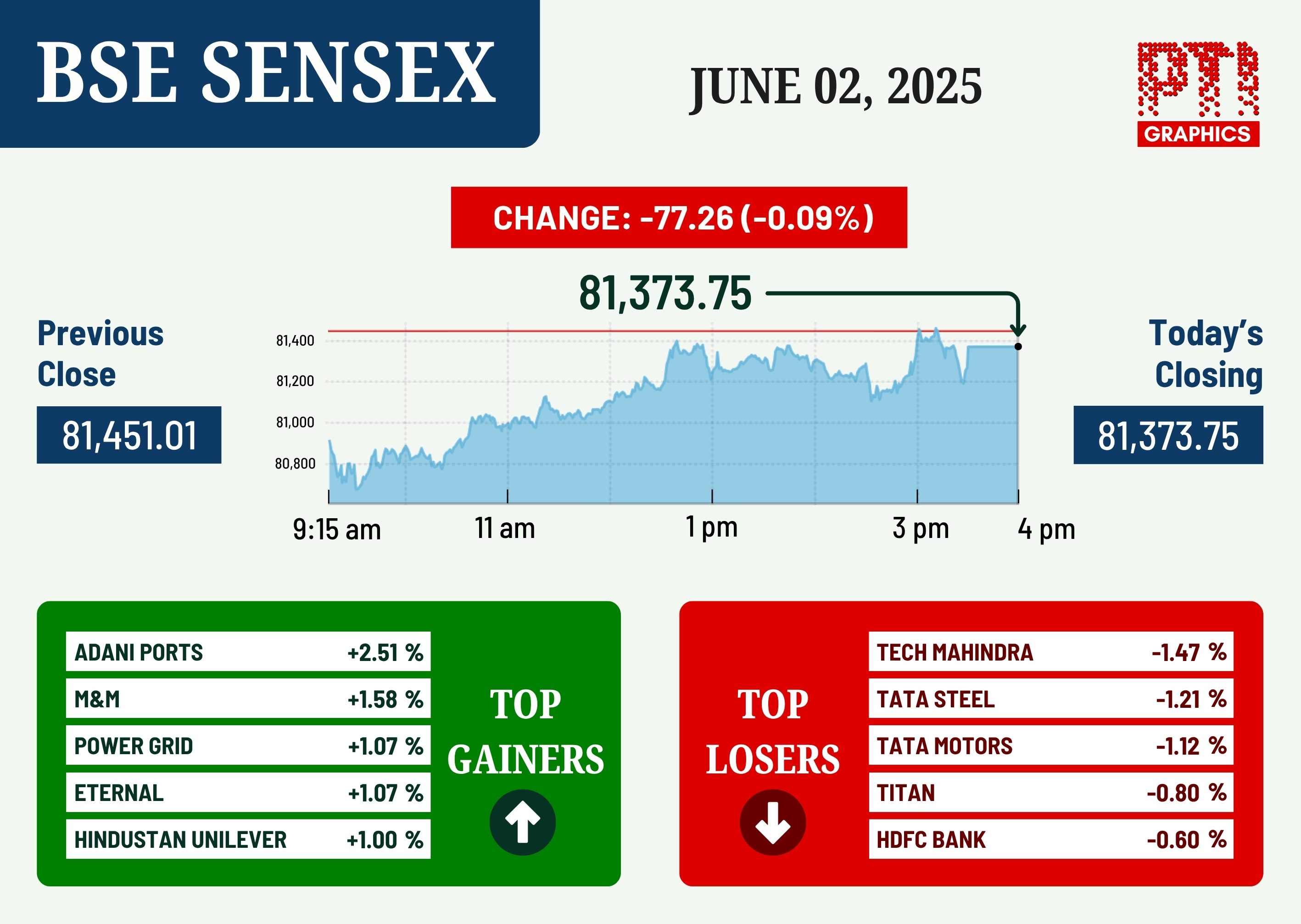 "Benchmark indices closed lower with marginal losses in a volatile start to June. Markets started the week on a cautious, range-bound note, with Nifty-50 sharply lower at open on fresh trade tensions after the US announced the doubling of steel and aluminium tariffs to 50 per cent. Despite positive domestic cues after surprisingly strong GDP growth in the January-March 2025 quarter, markets were dragged lower in the morning on worsening global headlines ranging from trade to war.