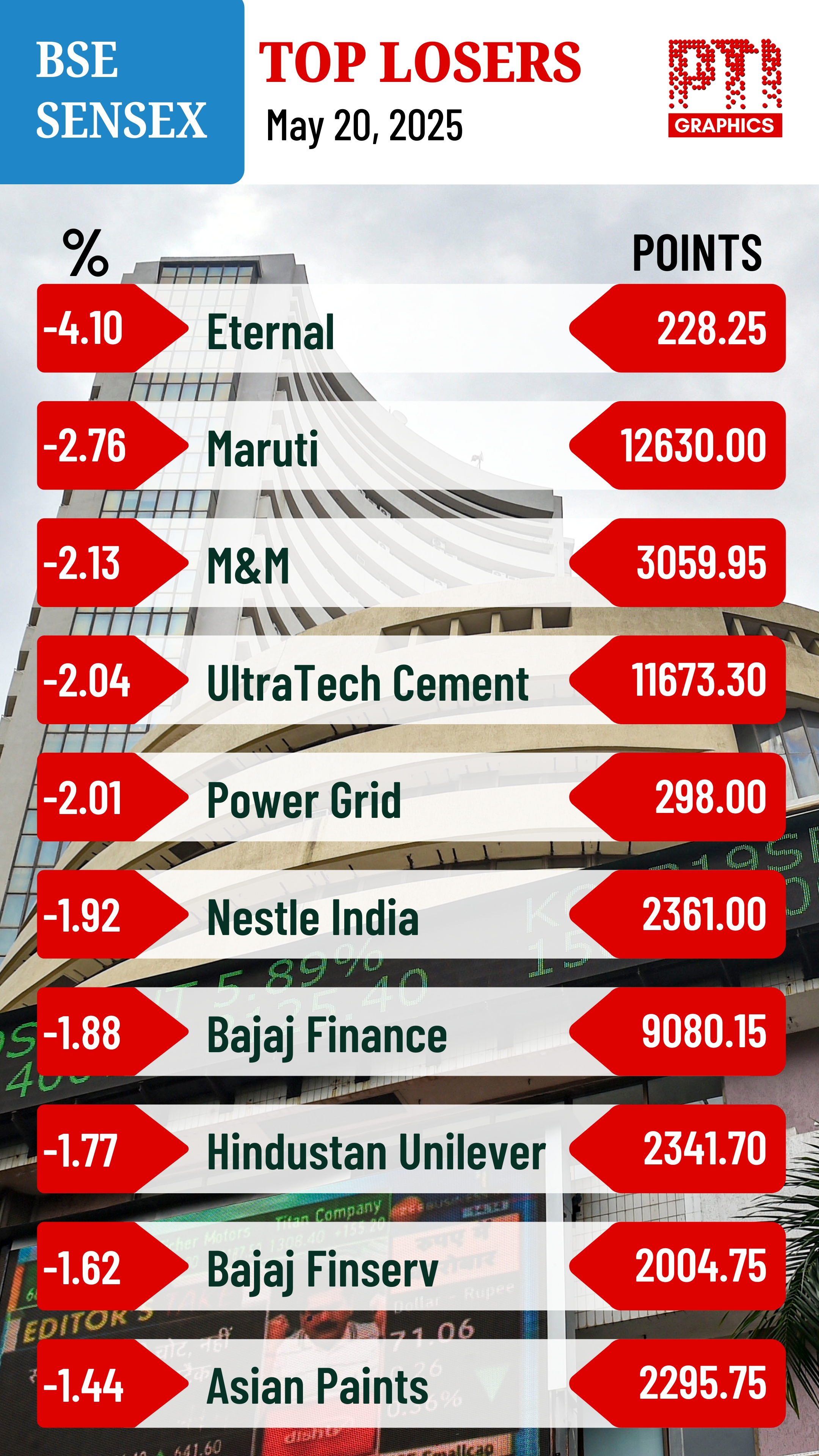From Sensex firms, Eternal dropped the most by 4.10 per cent. Maruti, Mahindra & Mahindra, UltraTech Cement, Power Grid, Nestle, Bajaj Finance, Hindustan Unilever and Asian Paints were also among the laggards. HDFC Bank dropped by 1.26 per cent and index major Reliance Industries by 1.13 per cent.