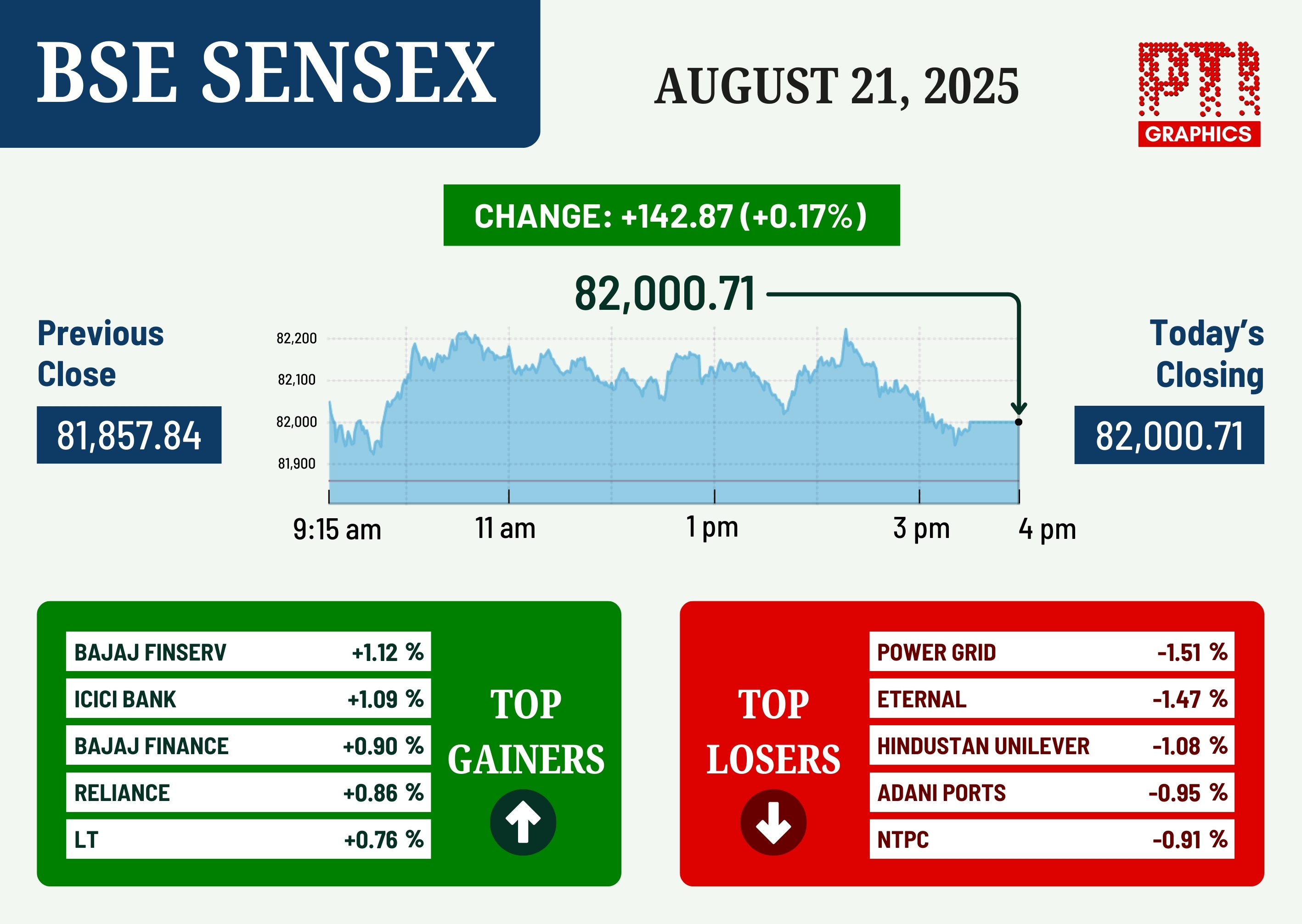 The 30-share BSE Sensex climbed 142.87 points or 0.17 per cent to settle at 82,000.71 in a restricted trade. During the day, it rallied 373.33 points or 0.45 per cent to 82,231.17. As many as 14 Sensex shares closed higher, while 16 ended with losses.