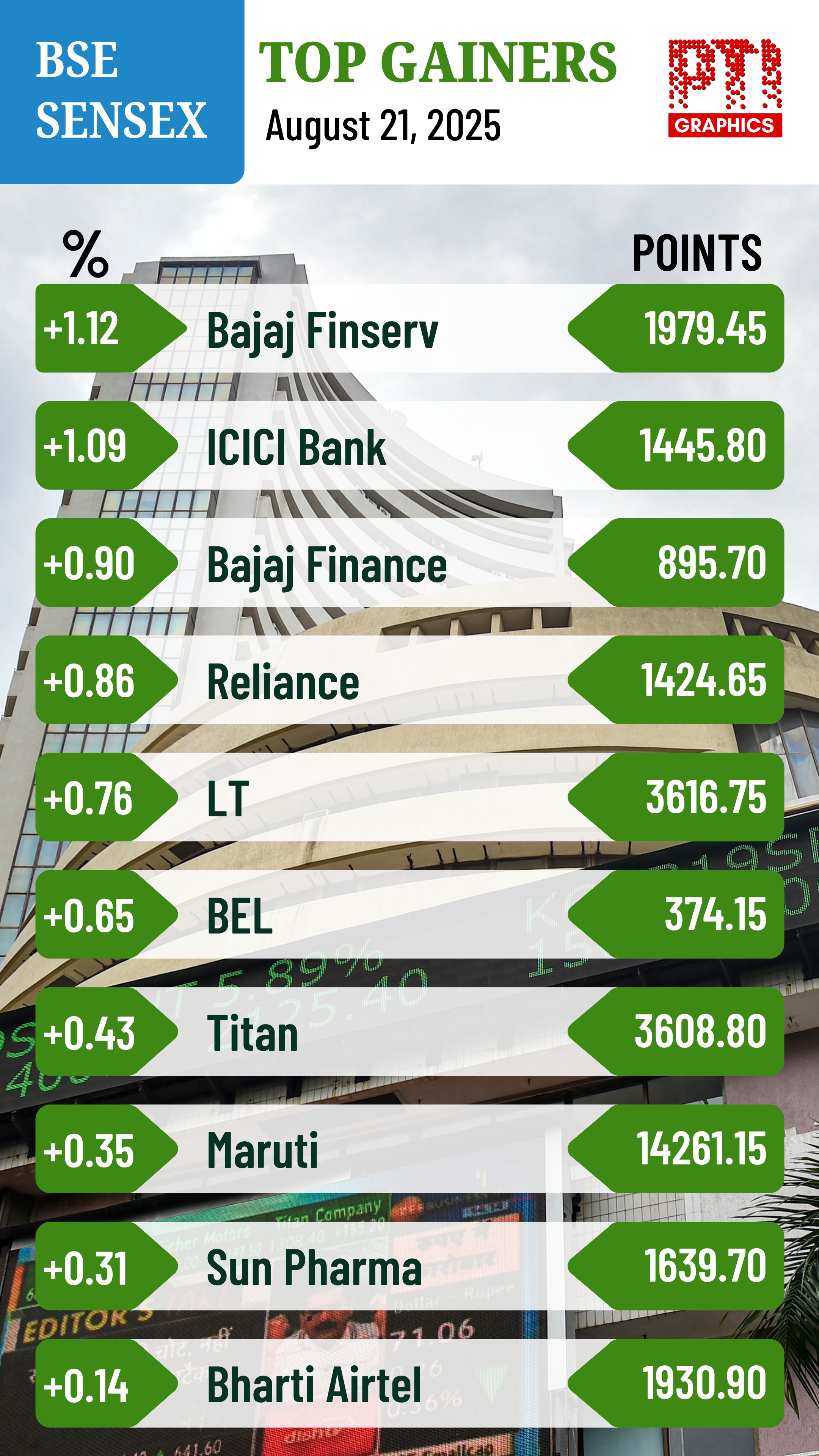 Among Sensex firms, Bajaj Finserv, ICICI Bank, Reliance Industries, Bajaj Finance, Larsen & Toubro and Bharat Electronics were the major gainers. However, Power Grid, Eternal, Hindustan Unilever and Adani Ports were among the laggards.