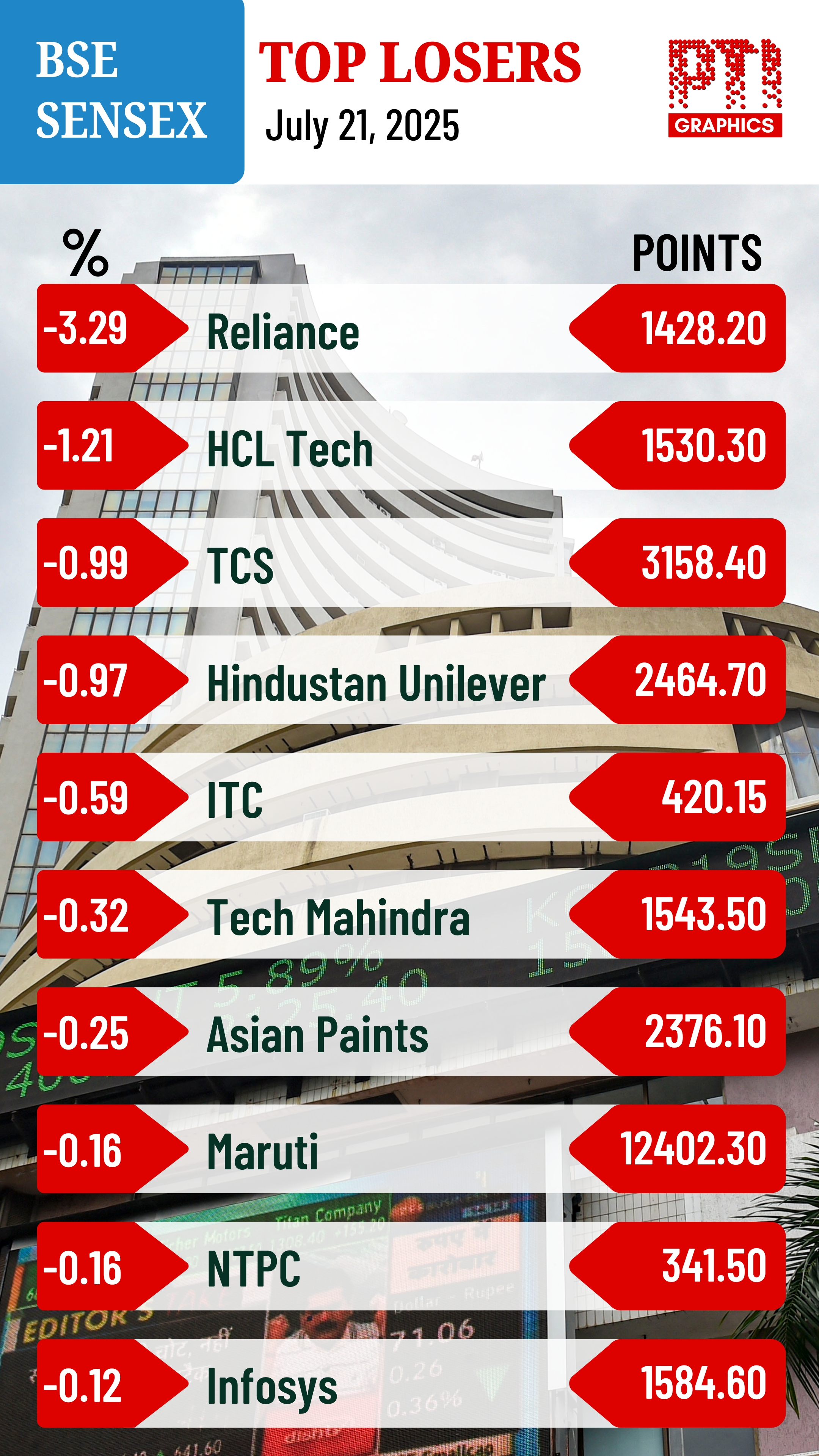 HCL Tech, Hindustan Unilever, Tata Consultancy Services and ITC were also among the laggards.