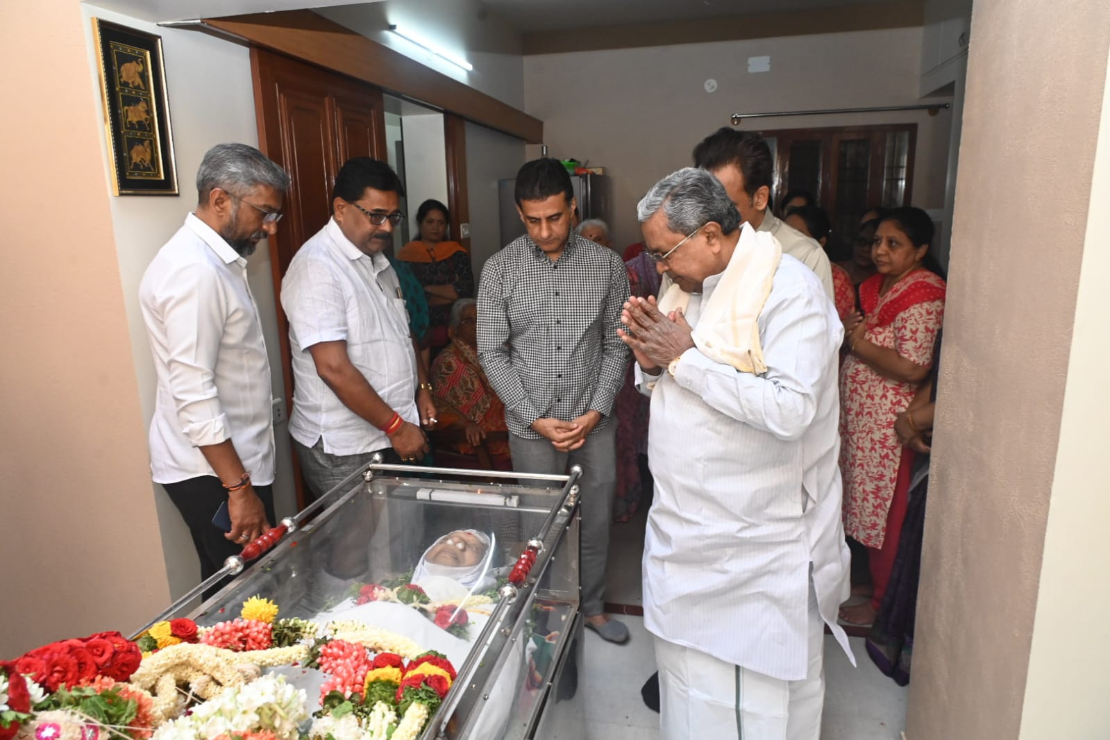 On February 11, the Chief Minister visited the residence of P. Ramiah, a respected senior journalist, former bureau chief of The Hindu, and a former MLC, to pay his final respects. The Home Minister Parameshwar, MLA Sri Rizwan, senior officials, and several journalists were present. Former Deputy Chief Minister Aswathnarayan, Upper House Speaker Basavaraj Horatti, and Agriculture Minister Cheluvarayaswamy also visited to express condolences and pray for the departed soul.