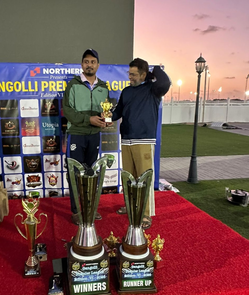 Speaking on behalf of the organizing team, Althaf Khalife acknowledged Sameer’s contributions to the league and thanked all participating teams, sponsors, and volunteers for their support. Key sponsors included Northern Insurance Brokers LLC, Tanzeem Auto Garage and Final Touch Auto Service, Dimx Atelier Interior Design LLC, and Vivek Nayak Gangolli.