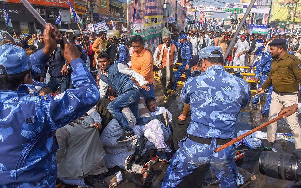 Kushwaha, who had received blows on his body, squatted on the roadside along with a number of supporters alleging that they had informed the police about their march.