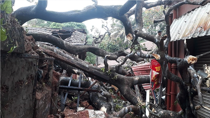 Because of the gusty wind, the tree fell on those houses damaging the compound and house partially. No casualties were reported.