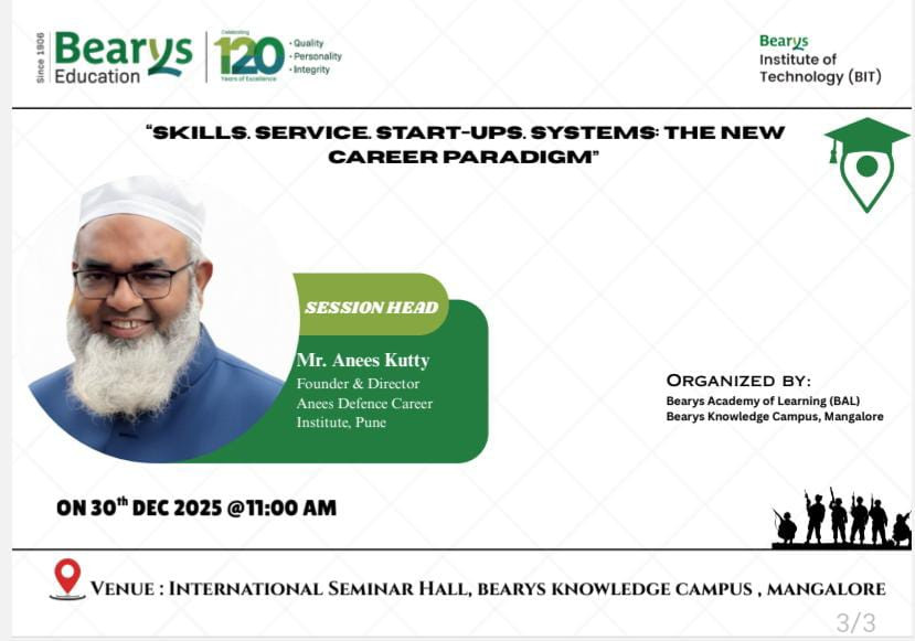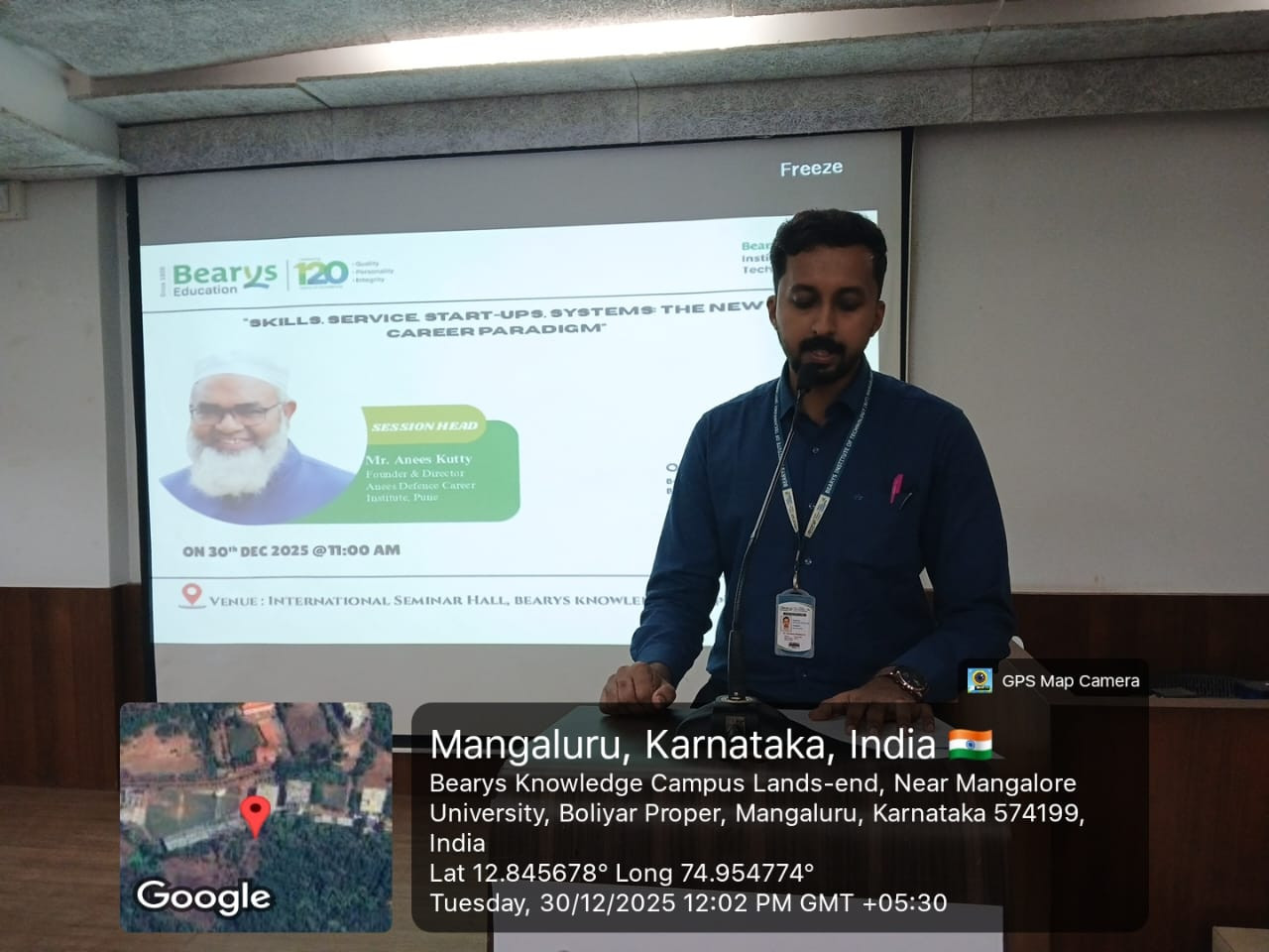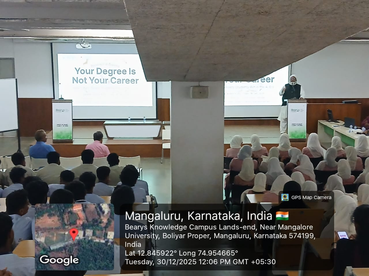 Mangaluru: A student development session was held at Bearys Institute of Technology (BIT), Bearys Knowledge Campus, on December 30, 2025, at the International Seminar Hall, led by nationally and internationally respected educator, mentor, and career strategist Anees Kutty.