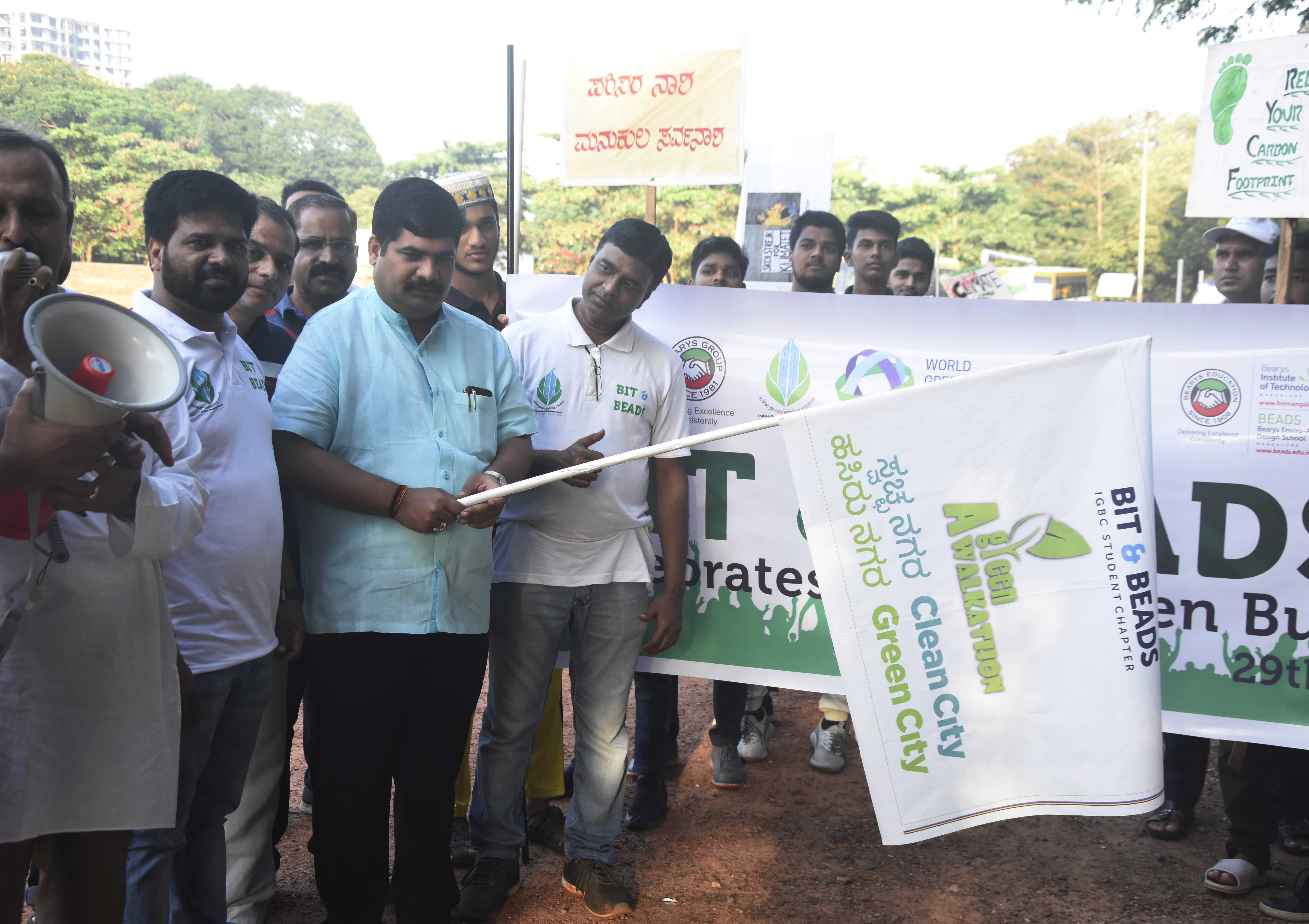 Mangaluru: To mark the 'World Green Building Week' Bearys Institute of Technology (BIT) and Bearys Enviro-Architecture Design School (BEADS) on Sunday organised a 'Green Walkathon' here. The walkathon was flagged off by Mangaluru South MLA Vaedavyas Kamath at Nehru Maidan.