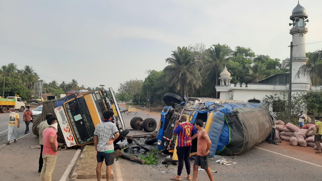 The driver of another truck also has sustained serious injuries in the accident. A case has been registered at Padubidri Police Station in this regard.