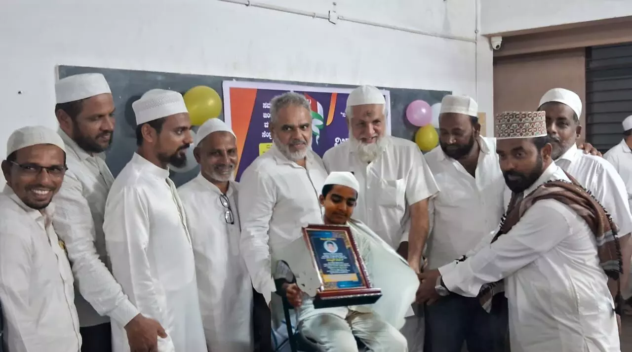 In recognition of his achievement, SKSBV Tanveerul Islam Madrasa, Uppinangady felicitated him at a special event.