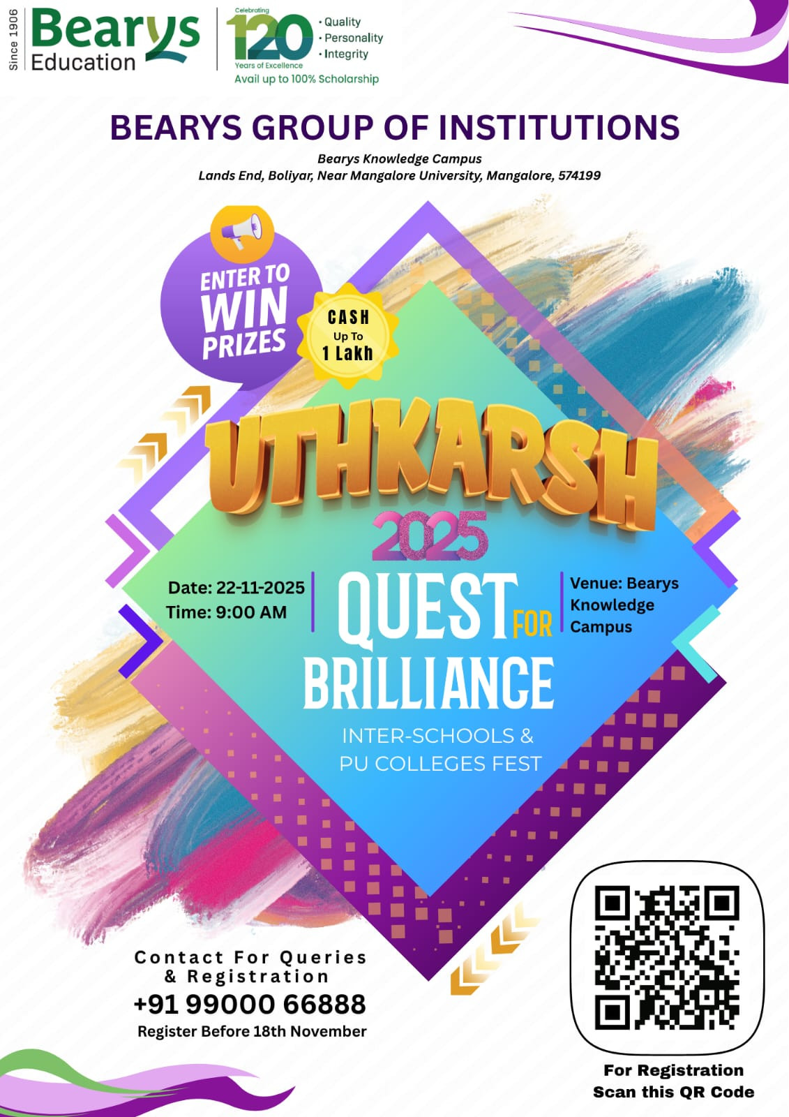 Mangaluru: The Bearys Group of Institutions has announced that it will host “UTHKARSH 2025,” an inter-institutional talent fest for SSLC/10th and II PUC/12th students on 22 November 2025 at Bearys Knowledge Campus, Lands End, Boliyar, near Mangalore University.