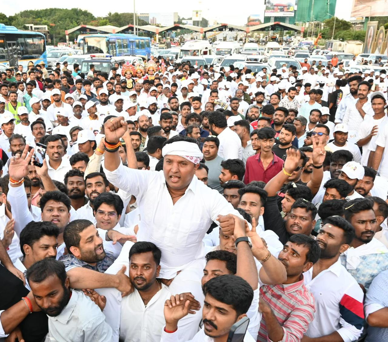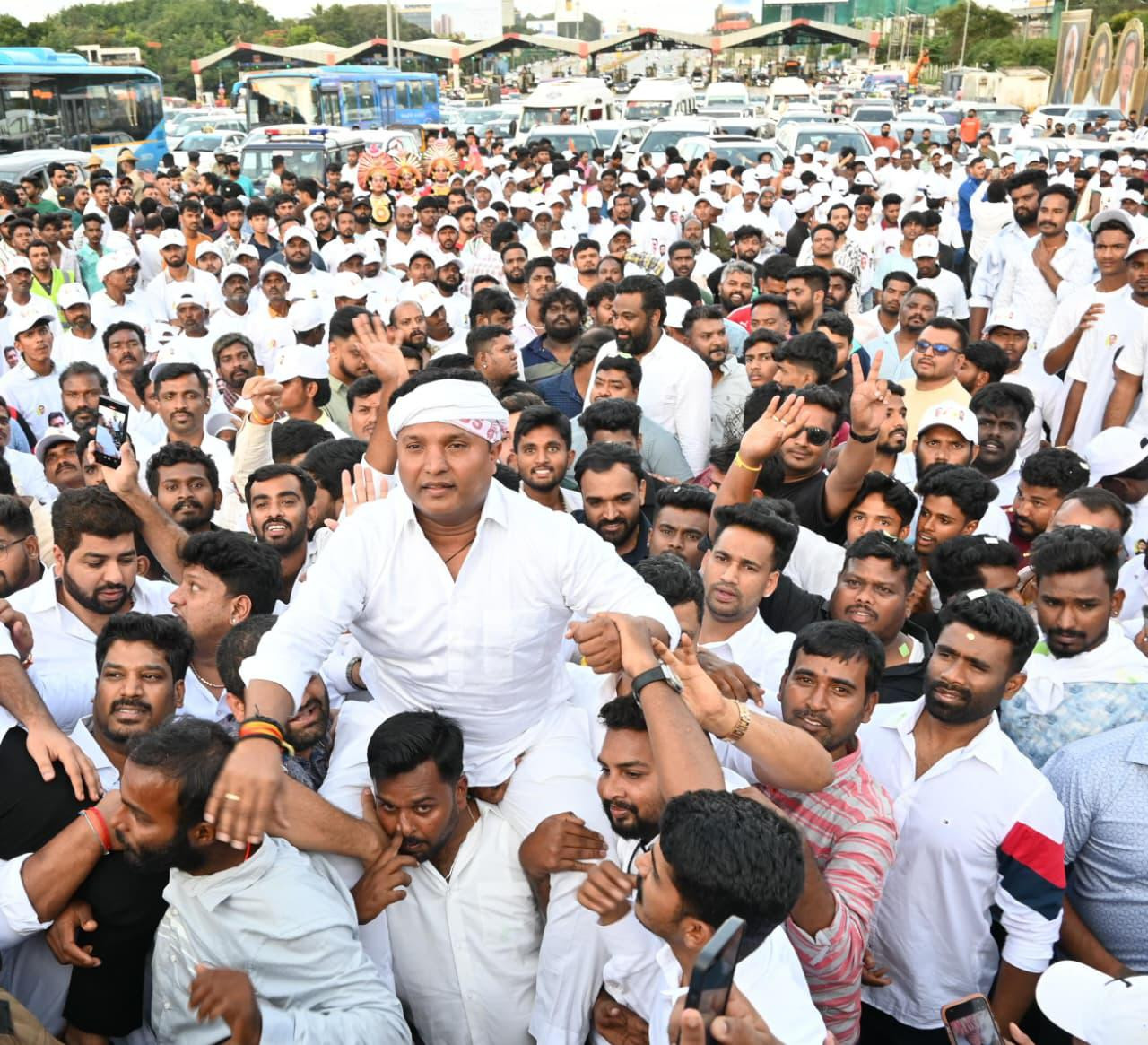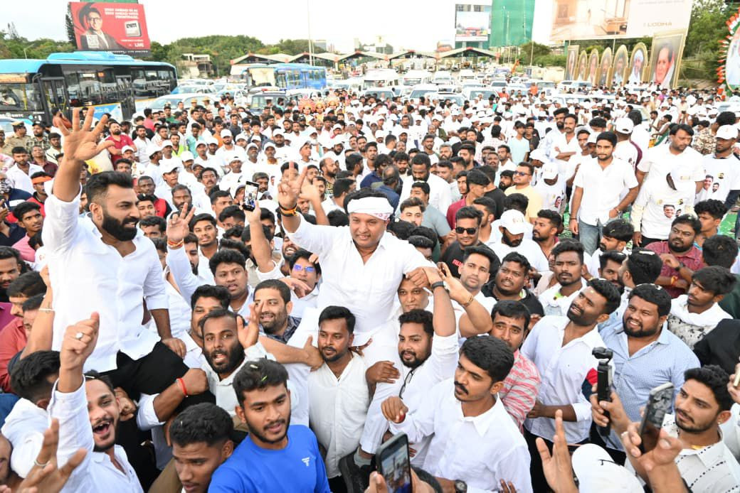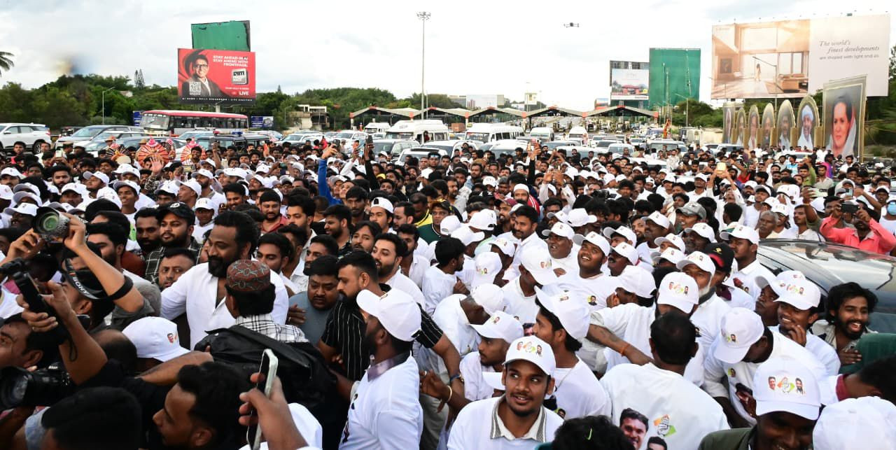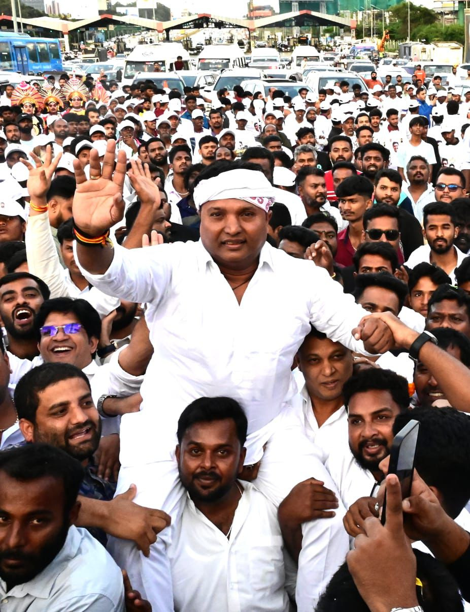 Following his arrival, party workers organised a large bike and car rally, forming a long convoy that accompanied him from the airport to the KPCC office. The rally extended for several kilometres, drawing sizeable gatherings along the route. Supporters showered him with flowers and offered greetings, creating a celebratory environment throughout the journey.