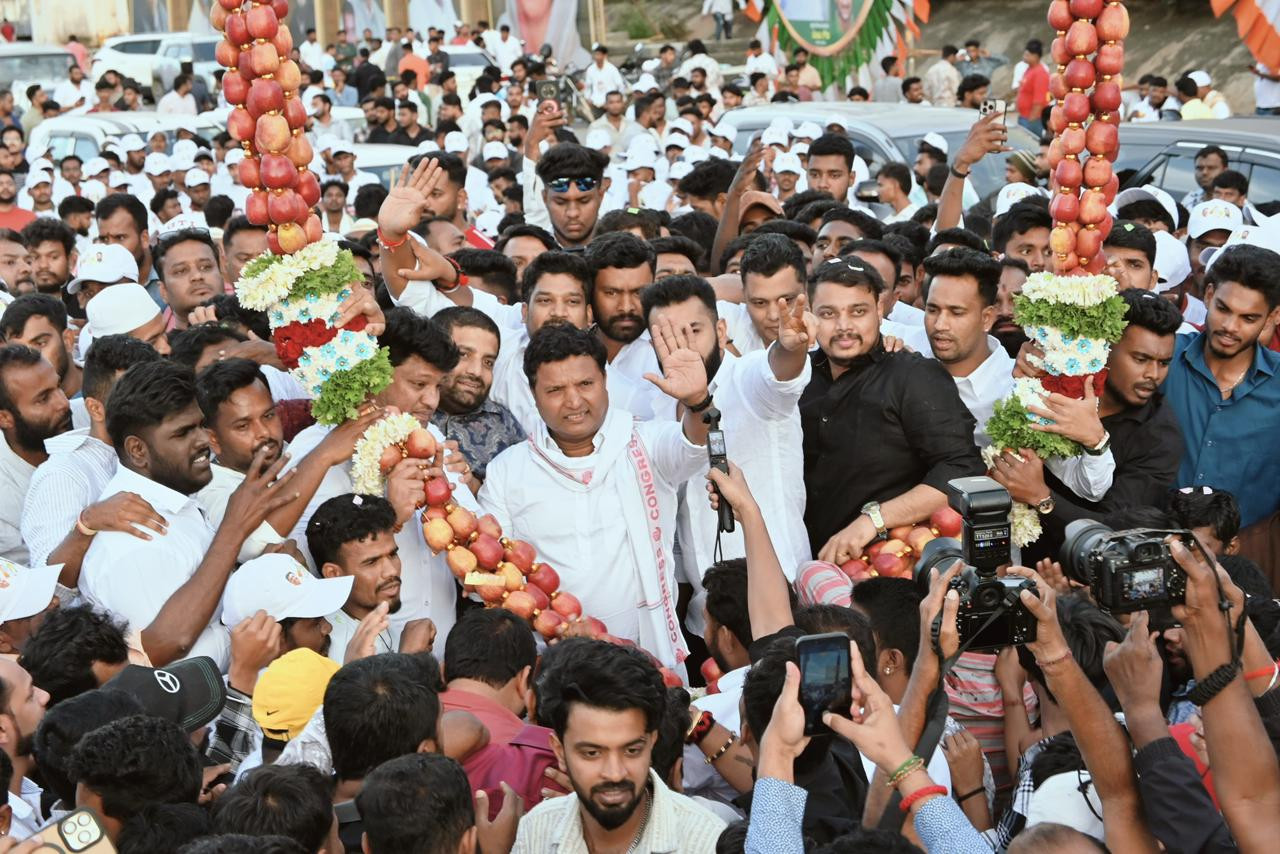 Bengaluru: AICC Secretary (in-charge of Gujarat) Srinivas B.V received a grand and elaborate reception in Bengaluru during his first visit to the city after taking charge of his new organisational role.
