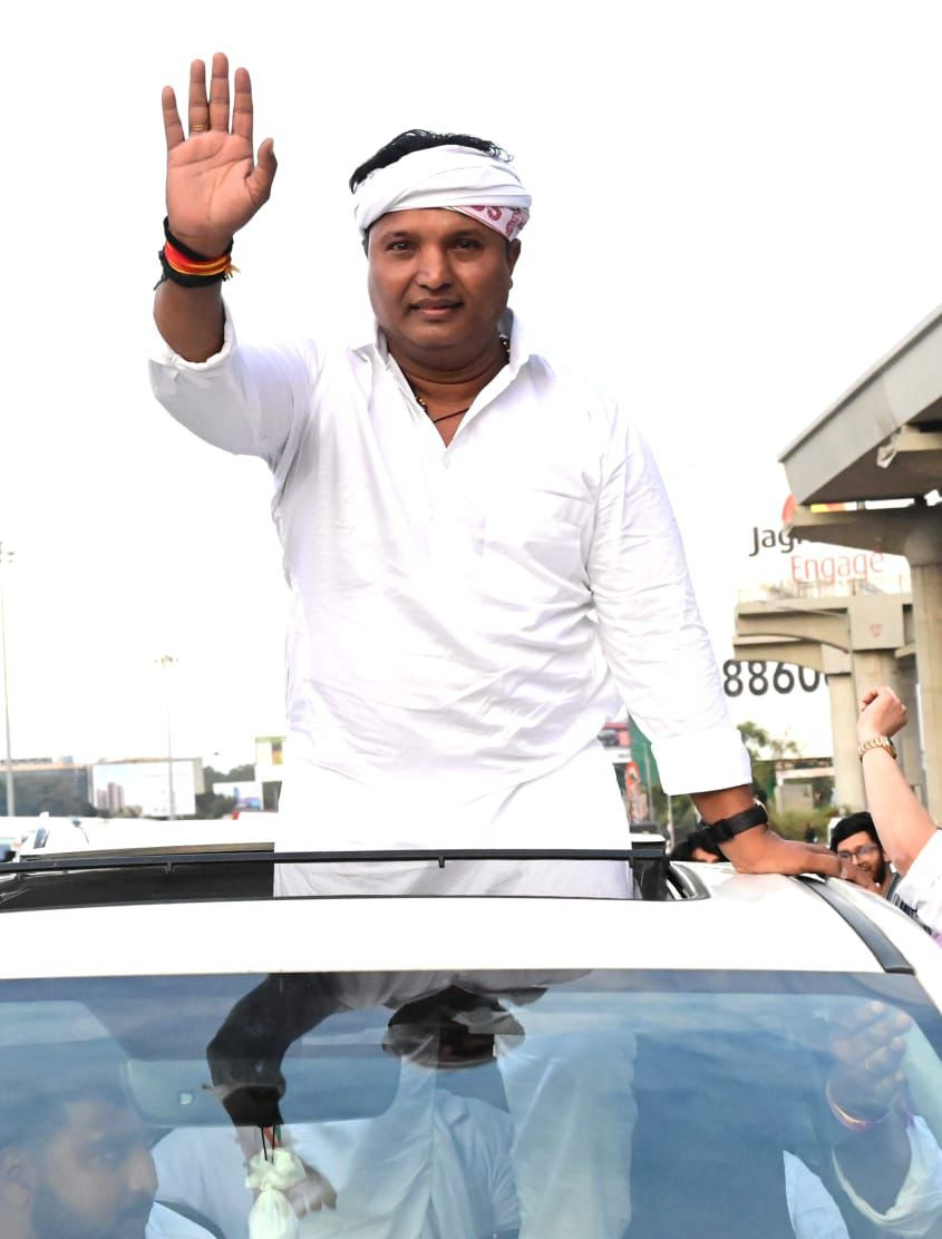 Upon his arrival at Kempegowda International Airport, Srinivas B.V was welcomed by an estimated crowd of more than 4,000 Congress workers, including members of the Youth Congress, NSUI, and various party units. The airport premises witnessed an energetic atmosphere as party supporters raised slogans, waved flags, and expressed strong enthusiasm.