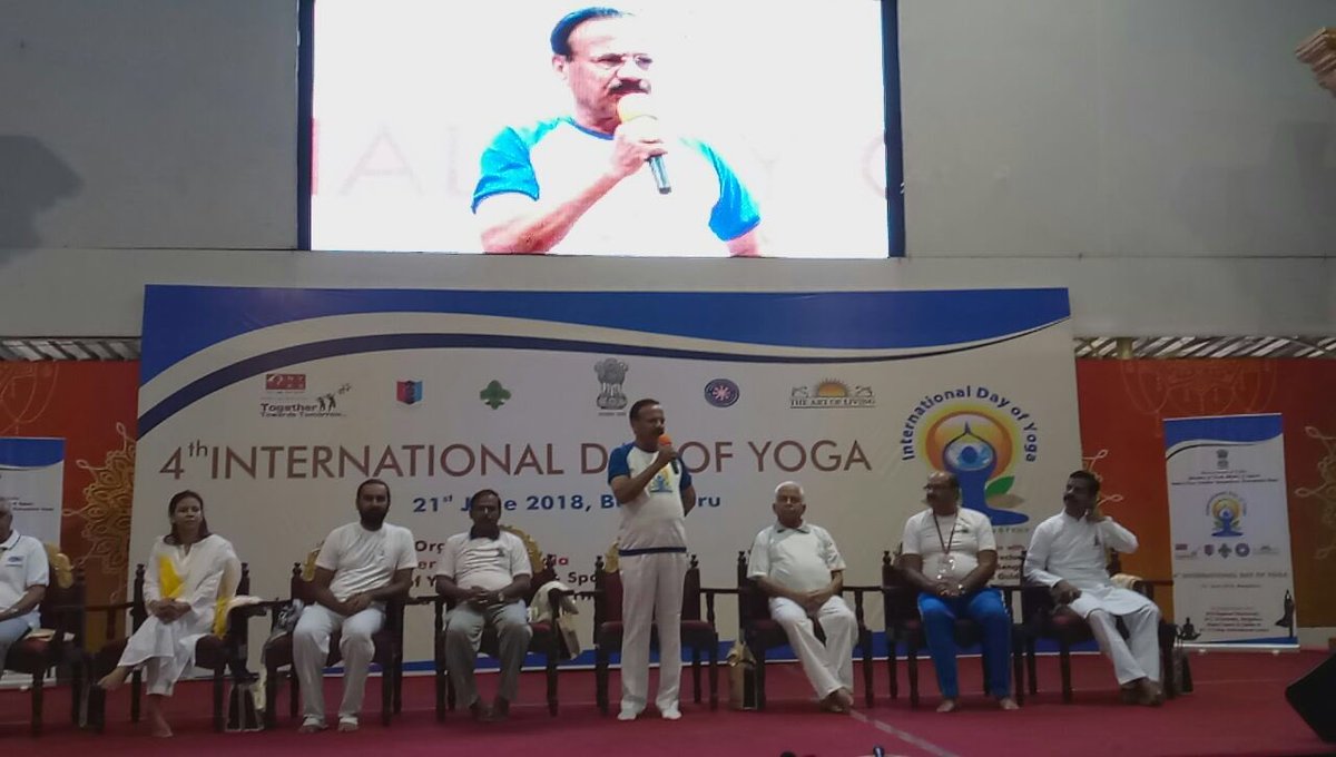 Bengaluru, June 21 : Thousands of people, young and old, on Thursday celebrated the fourth International Yoga Day in Karnataka by participating in yoga sessions held in cities and towns across the state.
