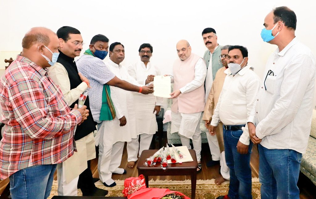 मुख्यमंत्री श्री @HemantSorenJMM की अध्यक्षता में झारखण्ड से सर्वदलीय शिष्टमंडल ने माननीय केंद्रीय गृह मंत्री श्री अमित शाह से मुलाकात कर उन्हें जाति आधारित जनगणना कराने हेतु माँग पत्र सौंपा। pic.twitter.com/RoVEAFjH8V