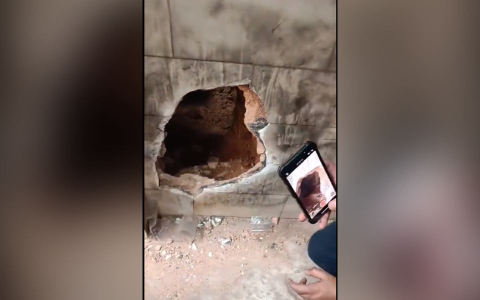 Robbers drilled a hole in the jewellery showroom from a neighboring shop and carried out the robbery.