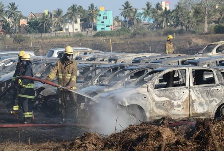 Chennai, Feb 24: Over 170 cars were gutted Sunday when a major fire swept through a parking lot at a suburban neighbourhood, with thick columns of black smoke engulfing the entire area, inconveniencing the people and causing anxiety.