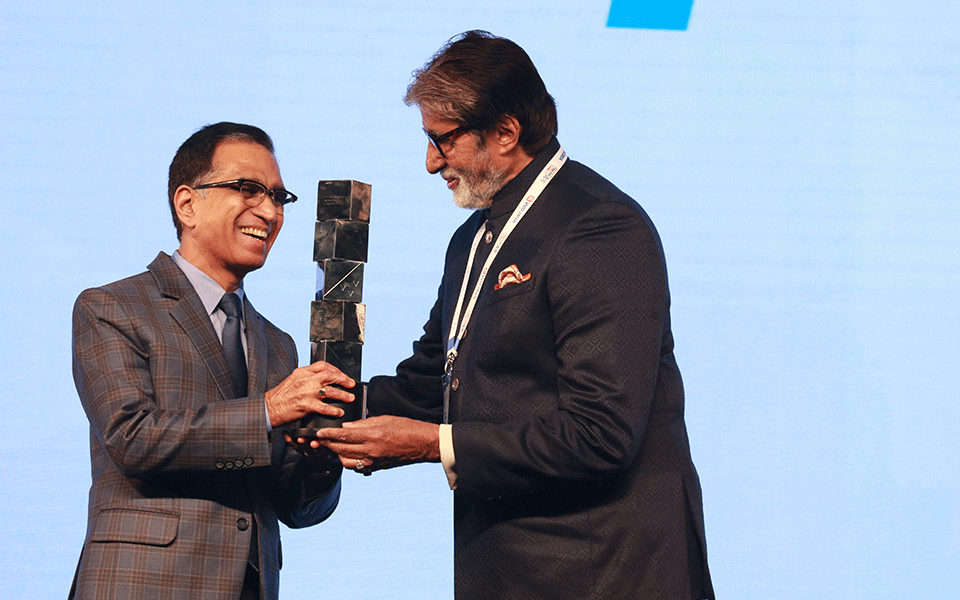 Bollywood superstar Amitabh Bachchan, who is also the brand ambassador of Kalyan Jewellers was present at the event and presented the award to Kalyanaraman.