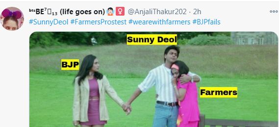 Sunny deol is supporting both BJP and farmers and it's like someone support Britishers and Indians both...#FarmersProtest #SunnyDeol
