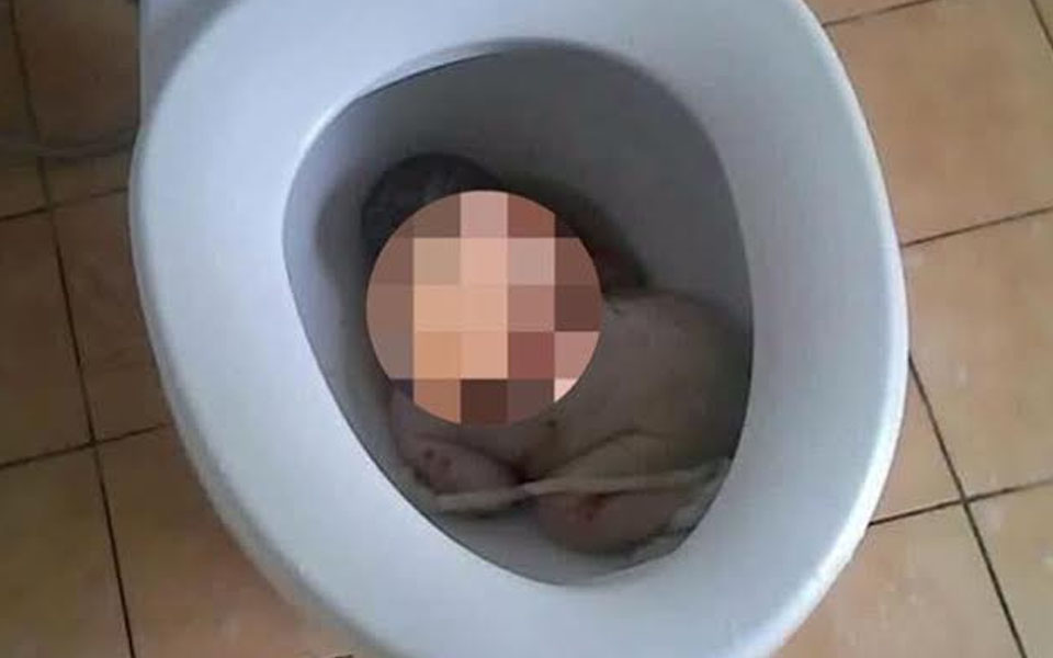 A sanitary worker was cleaning the choked toilet in the female ward of the hospital when he spotted the newborn child's body stuck in the commode, they said.