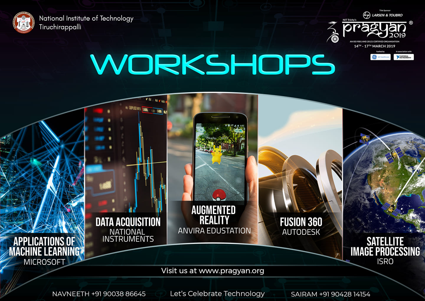 All the different events have led to a grand stage as Pragyan ‘19 gets ready to stitch together the best celebration of technology yet. Pragyan will have 30 events spread out over 7 clusters. The events are complemented by workshops conducted by leading organisations in their respective fields such as Anvira Edustation, National Instruments, Autodesk, Indian Space Research Organisation (ISRO), Microsoft, HTRI, The Data Mind Centre, Cadence supported by Entuple Technologies, KPMG, HP, Ansys, Jetbrains and IB- Hubs. And these are only few of the workshop organisers in the star-studded roster.