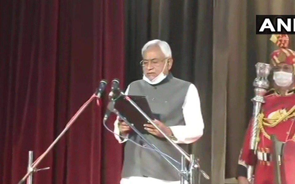 Patna: Nitish Kumar was on Monday sworn in as the Chief Minister of Bihar for the seventh time in two decades, in presence of top leaders of the NDA including Union Home minister Amit Shah and BJP national president Jagat Prakash Nadda.