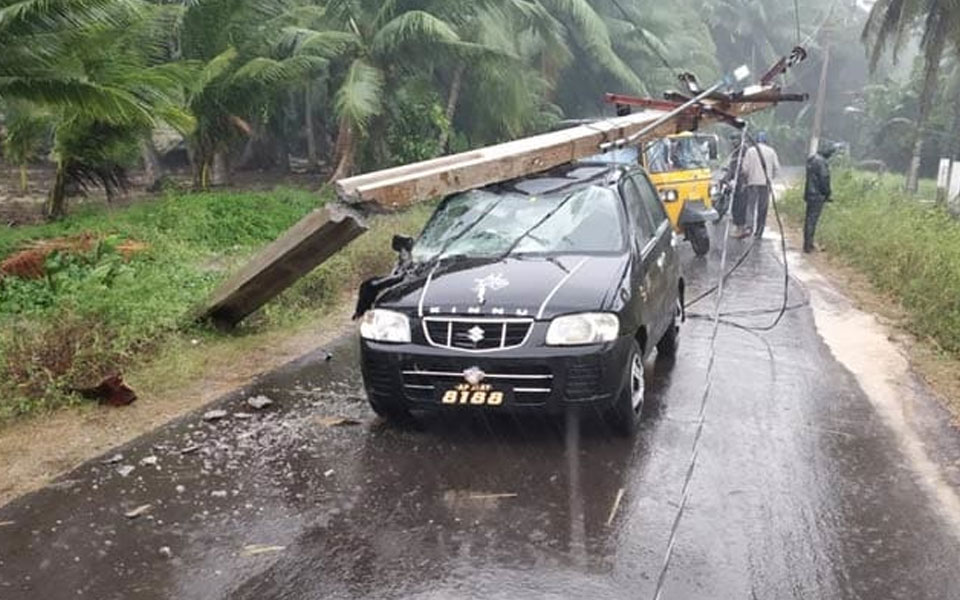 Howling winds that gusted up to 85-90 kmph uprooted electric poles and trees in Katrenikona, Tallarevu and Malkipuram in East Godavari, disrupting power supply. No casualties were, however, reported.
