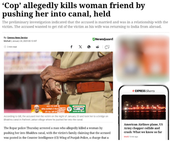 The Desk found another report by The Indian Express, published on January 24, whose headline read: “‘Cop’ allegedly kills woman friend by pushing her into canal, held”