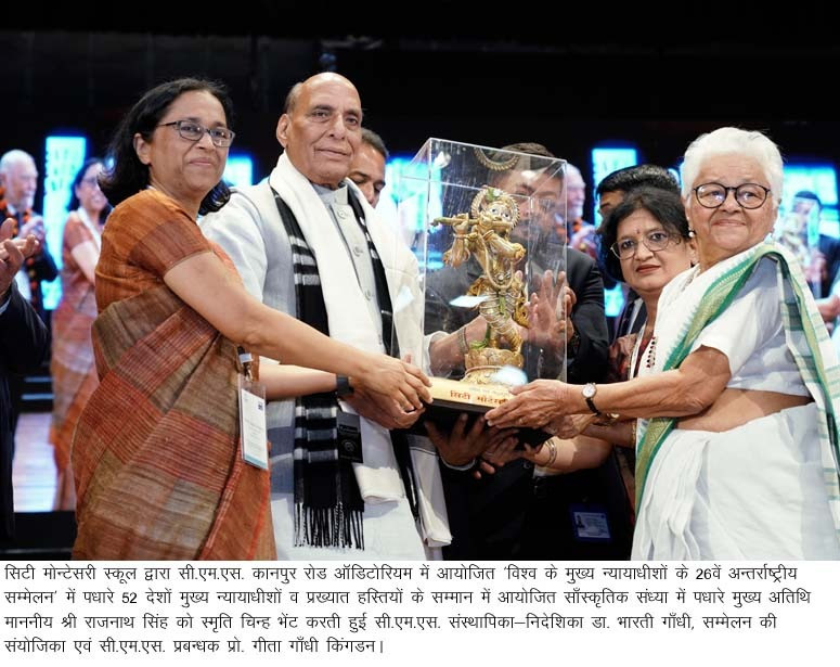 Lucknow: Defence Minister Rajnath Singh and Chief Minister Yogi Adityanath attended the 26th International Conference of Chief Justices of the World organised by City Montessori School (CMS) in Lucknow, where jurists and dignitaries from 52 countries are taking part. The event is being held at the CMS Kanpur Road auditorium from November 20 to 23.
