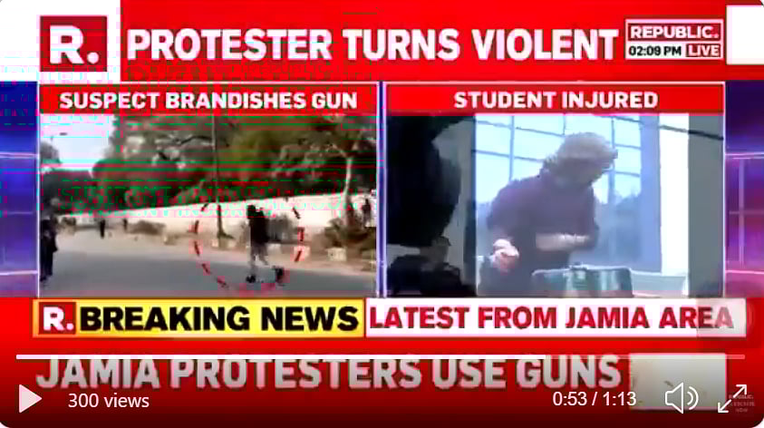 For a good half and hour or more @republic TV and their reporter @aishkapoor passed off the shooter as the ‘real face of anti-CAA’ protests. pic.twitter.com/QrMkeiT5Kr