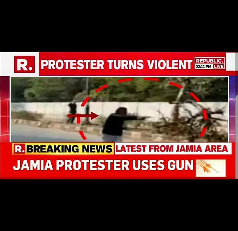 Even as reports and videos flew thick and fast on social media, Republic TV led with the news that a "Jamia protester" had turned "violent".