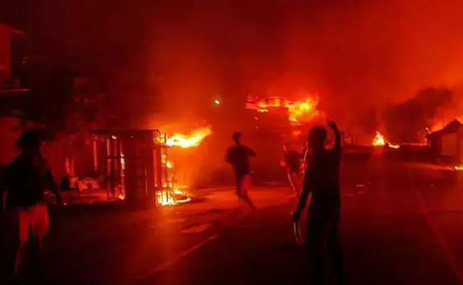 Tensions heightened in Manipur's Jiribam district on Saturday after suspected militants torched two police outposts, a forest office and at least 70 houses, prompting the authorities to transfer the superintendent of police, officials said.