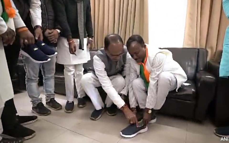 Bhopal: The BJP's Anuppur district unit chief in Madhya Pradesh, who had vowed in 2017 not to wear footwear till the party forms a government in the state, started wearing it again on Saturday, days after the saffron party registered a resounding victory in the assembly polls.