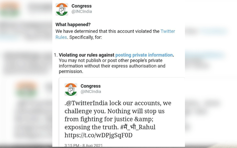The Congress on Thursday alleged that the party's official Twitter account as well as that of a large number of its leaders and workers have been blocked by the microblogging site.