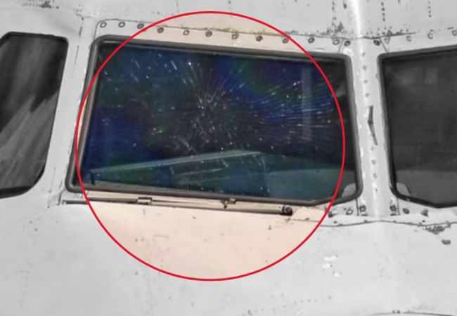 A crack in the windshield of an aircraft belonging to a private airline carrying 76 passengers from Madurai was detected by the pilot ahead of its landing at the airport here on Saturday, authorities said.