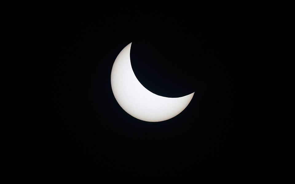 An annular solar eclipse, wherein the Sun appears like a ring of fire, is currently underway but cloudy skies are likely to play a spoilsport for sky gazers in the national capital.