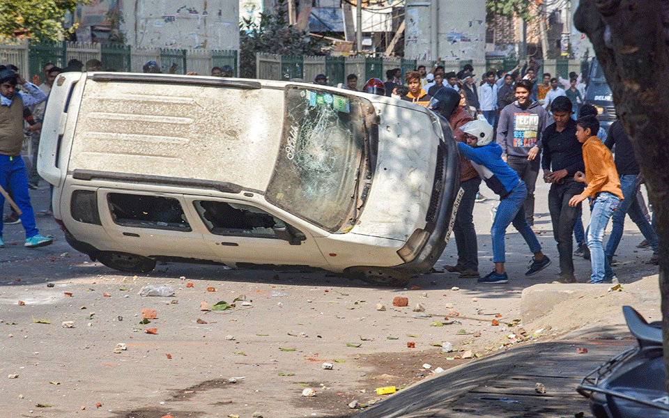 Violence continued unabated in Maujpur area of northeast Delhi on Tuesday, with two groups of people out on the road armed with rods and sticks.